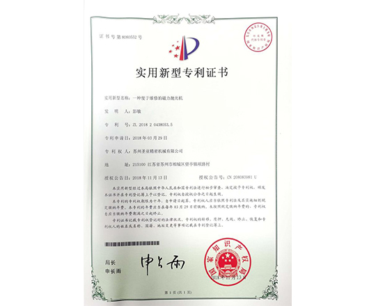 包括磁力拋光機、去毛刺設備在內的多項實用新型產品專利認證